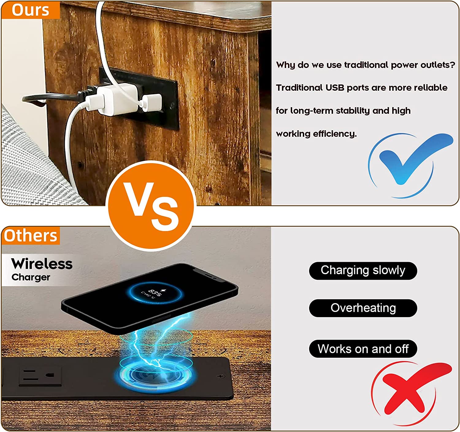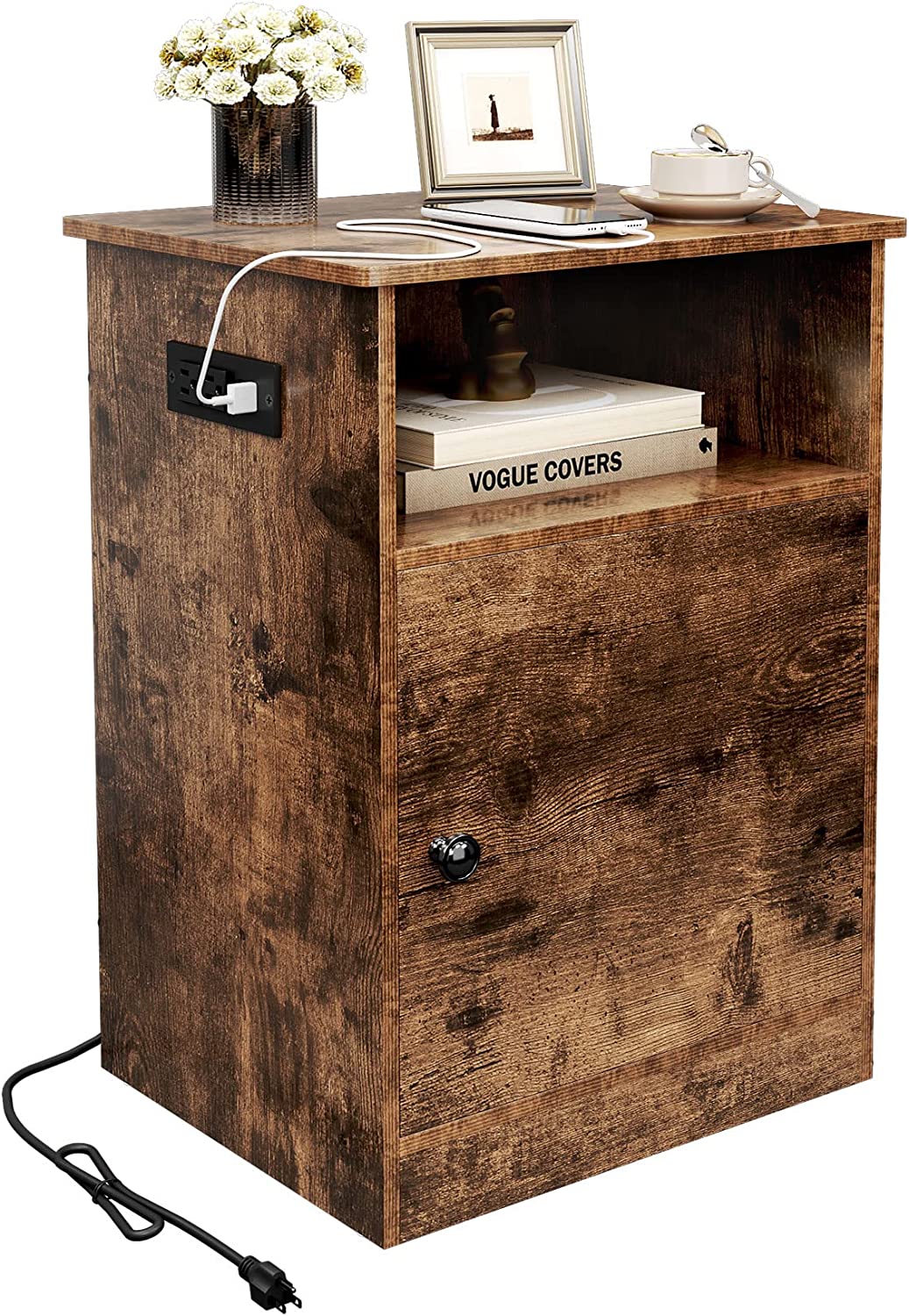 Nightstand with Charging Station Modern End Side Table with Storage Cabinet