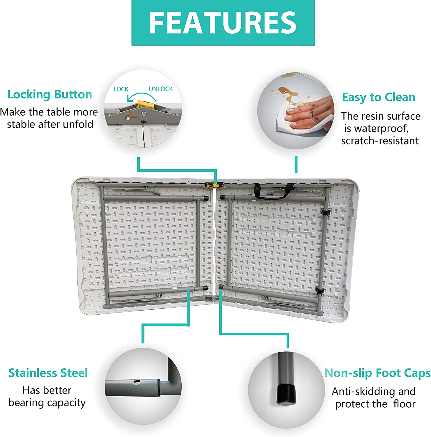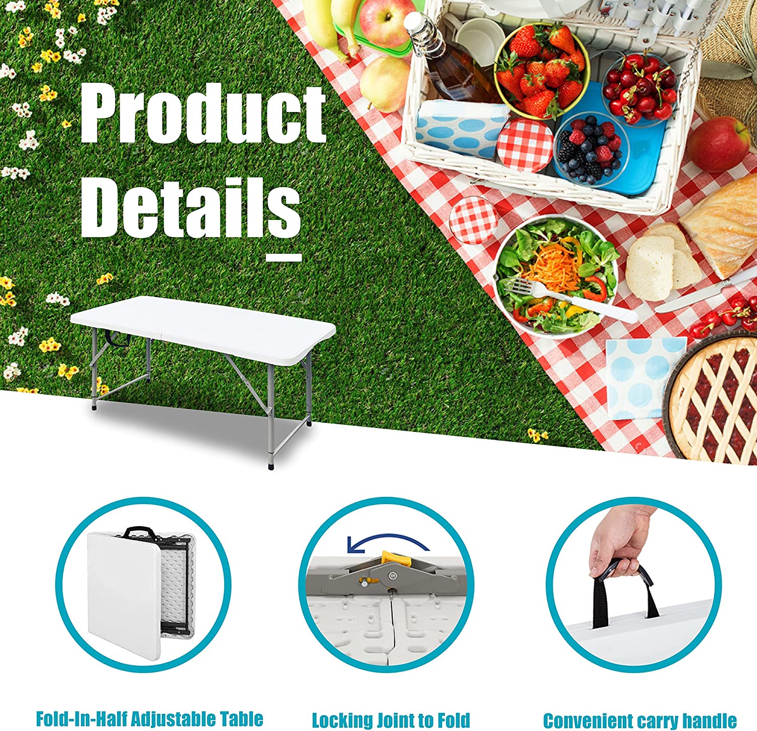 4ft Foldable Small Table with Handle