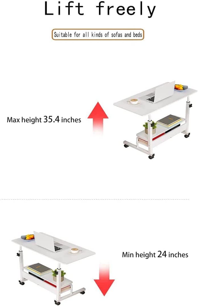 Adjustable Table with Storage Desk , (White, 15"D x 31"W x 35"H)