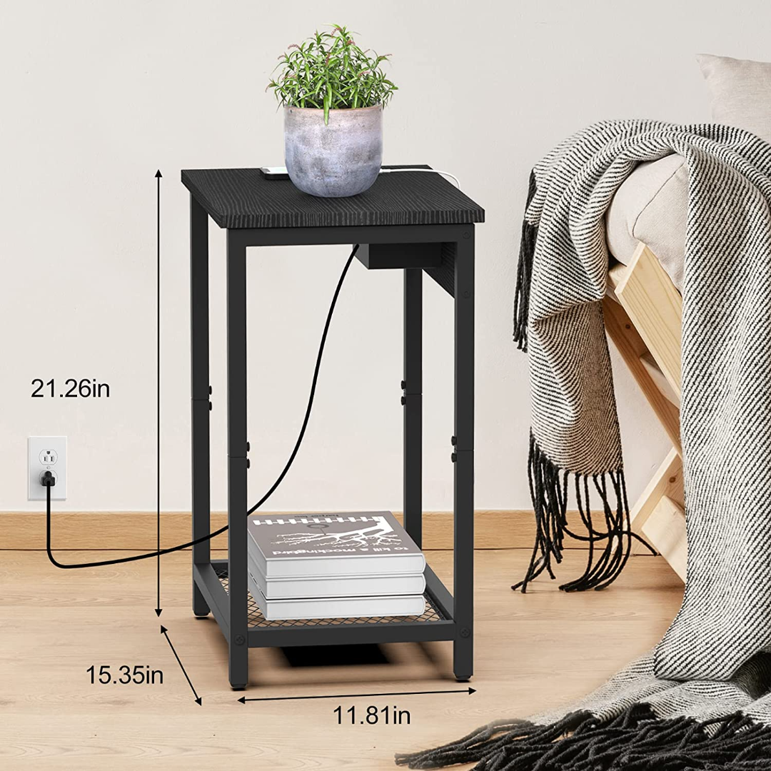 CONVENIENT CHARGING STATION - The end table with charging station are designed in perfect combination. Featuring two high-efficiency USB charging ports and two 3-prong AC power outlets for your convenience, we designed these 2 pack bedside tables to perfectly accent your couch or living room chair.