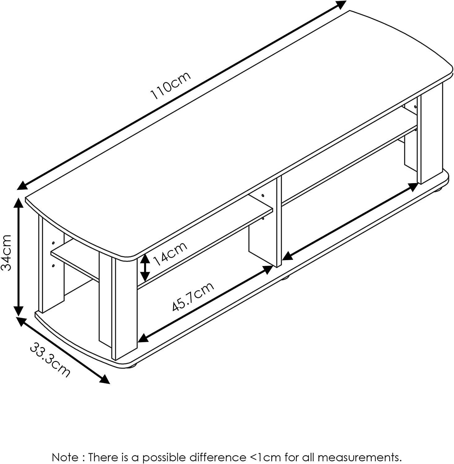 • Recommended maximum weight is 50 lbs. Product dimension: 43. 3(W)x13. 1(D)x13. 4(H) inches