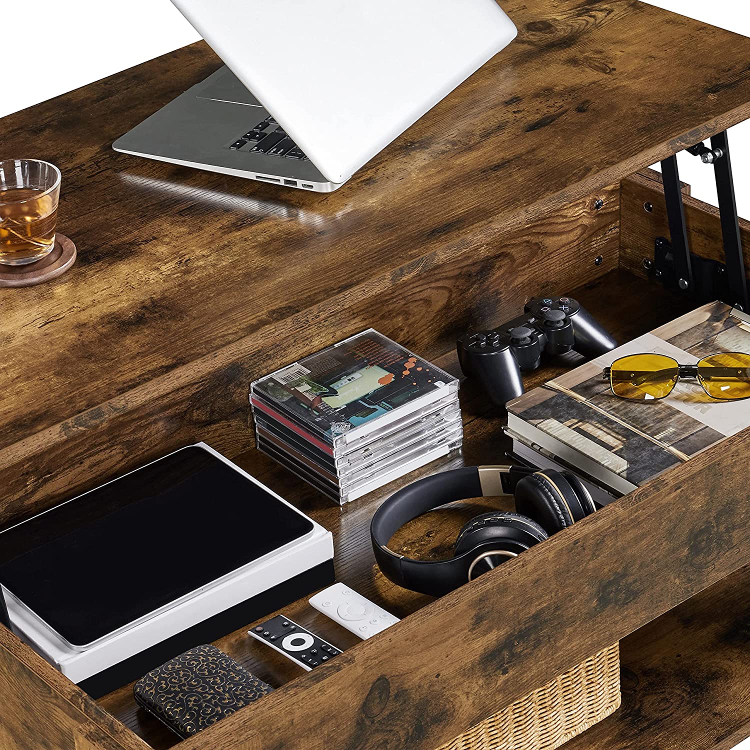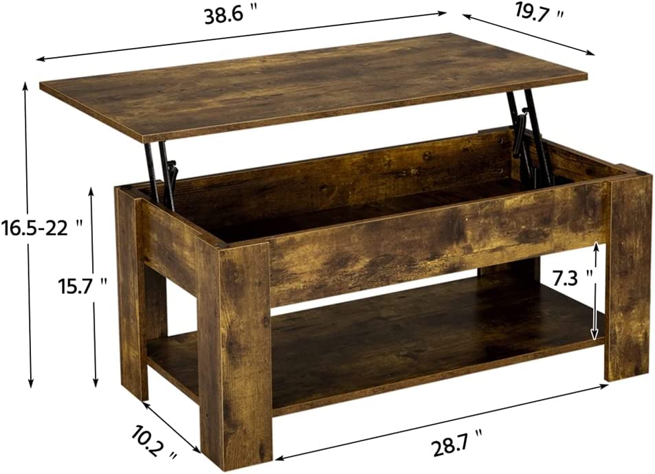 Rising Tabletop Dining Table for Living Room Reception Room, 38.6in L, Rustic Brown